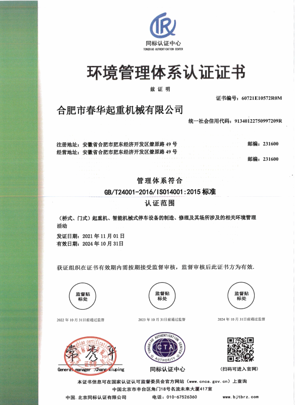 環(huán)境管理體系認(rèn)證證書